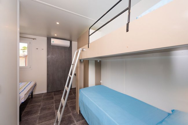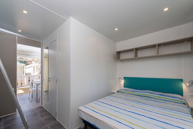 Le case mobili possono ospitare fino a 4 persone. Dispogono di area giorno con angolo cottura attrezzato, bagno con doccia, e veranda esterna. Le tipologie monolocali hanno i posti letto nell'area giorno e i bilocali dispongono di una camera da letto.