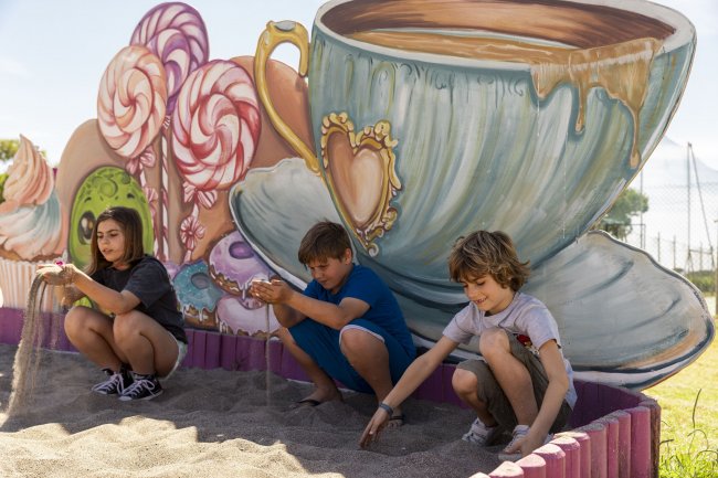 L'autentica vita en plein air. Monolocale composto da: soggiorno con letto matrimoniale e due letti singoli, bagno con doccia, patio arredato con angolo cottura, tavolo e sedie. Biancheria da letto e a bagno non inclusa.