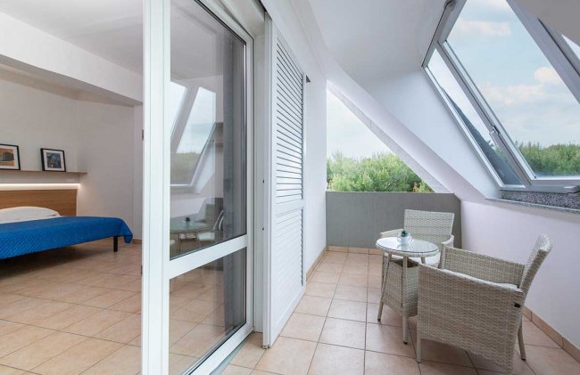 Camere composte da un letto matrimoniale, tv, aria condizionata, divano letto e bagno completo di tutti i servizi.