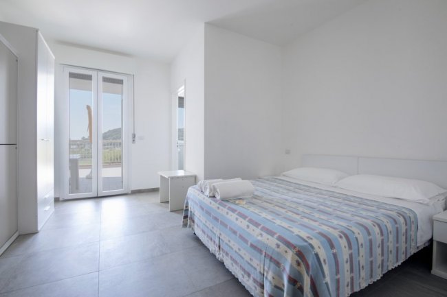 all'interno di una palazzina di 2 piani. Si compone di un monolocale dotato di letto matrimoniale, letto a castello, TV e angolo cottura coperto su ampio terrazzo, con bagno con bidet.